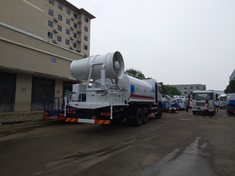 灑水車隨底盤選裝駕駛室;選裝側噴及農藥炮;品名:水;密度:1000千克/立方米;有效容積:15.6立方米;罐體外形尺寸(長×長軸×短軸)(mm):6600×2300×1500;ABS吸程≧7米,灑水寬度≧14-16米,射程≧25-30米,引水時間<5min,流量60m3/h。前沖(噴)、后灑、帶側噴(花灑)、帶后工作平臺、平臺上安裝綠化灑水高炮(炮噴射形狀可調節:直沖、大雨、中雨、毛毛雨、霧狀、可連續調節,360°旋轉),配消防接口,自流閥,濾網,帶自吸自排功能。配備大功率專用灑水泵,泵可自吸自排,安裝過濾網,帶消防接口,可通過消防栓進水,帶自流閥,隨車選裝20米綠化卷盤,可噴灑農藥,罐體金屬漆。罐體有橢圓和方圓罐兩種,可根據用戶的要求定做。