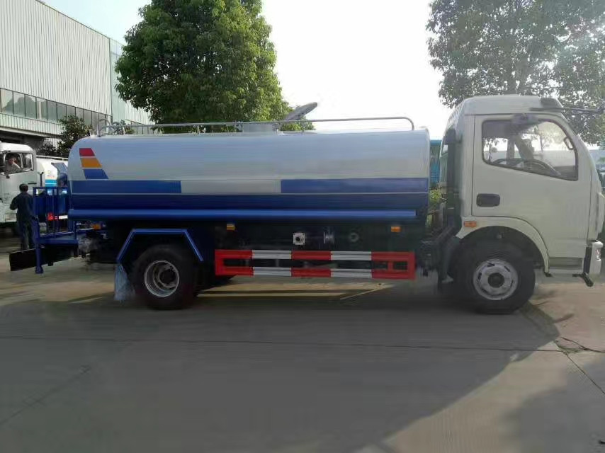 裝配置:罐體容積為9.4立方灑水車,罐體鋼板為4mm碳鋼Q235材質,罐內隔板具有防波作用,以減輕汽車行駛時罐體液體沖擊,罐體及整車外形尺寸按照公告。帶大功率專用灑水車水泵,泵可自吸自排,整車前沖、后灑、側噴、帶65消防接口,后平臺帶綠化灑水炮,灑水炮可全方位旋轉,可連續調成直沖狀、大雨、小雨、毛毛雨;前封頭帶水位計,后平臺主管路帶1寸澆花接口,后爬梯