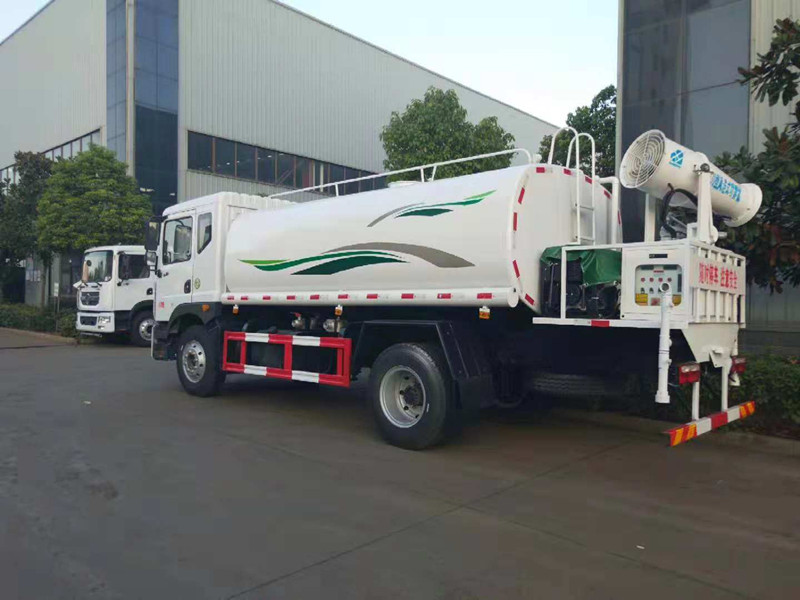 東風(fēng)多利卡D9噴霧抑塵灑水車_抑塵車多少錢一輛;我公司生產(chǎn)的東風(fēng)多利卡D9噴霧抑塵灑水車下線檢測了。車款車型選用東風(fēng)多利卡D9系列單橋底盤,3950mm軸距,新款排半駕駛室,康明斯ISB180 50六缸發(fā)動機(jī),國五排放,250mm車架,氣制動,動力轉(zhuǎn)向,離合助力,空調(diào),電動窗,中控鎖,ABS,8噸后橋,4噸前橋,東風(fēng)六檔變速箱,9.00R20鋼絲胎。選配30米噴霧抑塵機(jī)。罐體用5MM碳鋼板制作,罐內(nèi)隔板具有防波作用,以減低汽車行駛時(shí)罐體液體的沖擊。整車帶一個(gè)專用灑水泵(垂直吸程6米),灑水寬度14米,射程28米。多功能灑水車配備2個(gè)前沖(噴)(能將路面泥巴、塵土、垃圾沖干凈);2個(gè)后灑(能均勻地將水灑在路面,一次灑水寬度14米)、2個(gè)側(cè)噴(花灑)(能均勻地將路旁綠化帶澆灌)、帶1個(gè)后工作平臺,平臺上安裝1個(gè)綠化灑水高炮(灑水炮可全方位旋轉(zhuǎn),可連續(xù)調(diào)成直沖狀、大雨、小雨、毛毛雨,霧狀可調(diào)節(jié)沖洗高大樹木),引水時(shí)間<5min,流量90m3/h。帶1個(gè)消防接頭,帶1個(gè)自流閥,1個(gè)過濾裝置、人性化爬梯及側(cè)防護(hù)欄,安裝灑水音樂喇叭。
