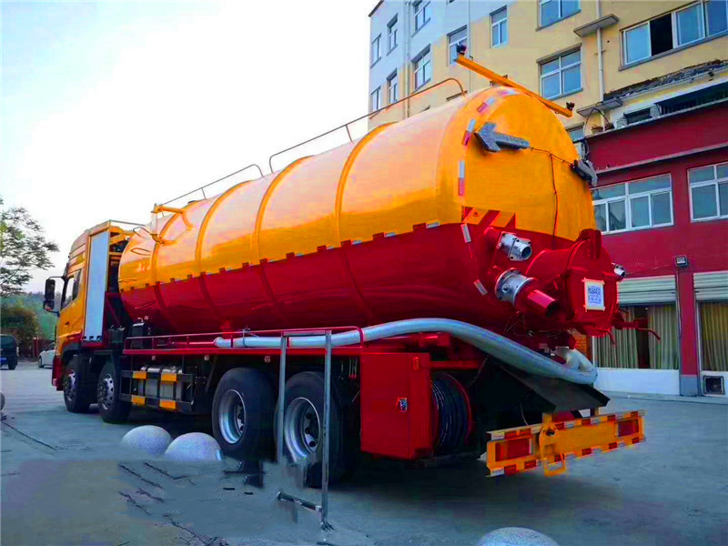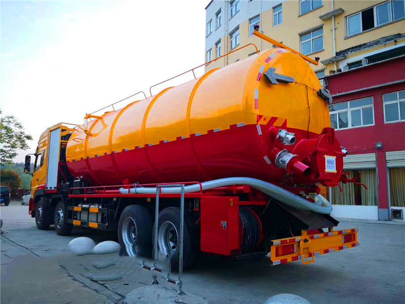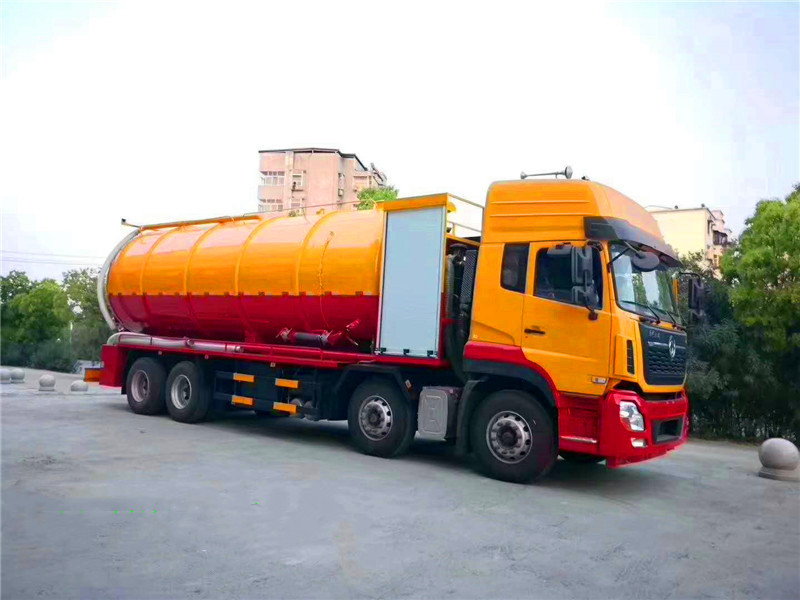 東風(fēng)天龍后八輪高壓清洗吸污車:采用國(guó)產(chǎn)優(yōu)質(zhì)碳鋼板制作,罐體采用一次成型而成,鋼板厚度8mm厚,封頭8mm厚,采用通潔或者品浮高壓清洗泵,大功率國(guó)產(chǎn)水循環(huán)吸污泵,加裝液壓卷盤,配60-100米高壓管,配10個(gè)多功能耐磨沖頭,尾部帶一個(gè)自流口,帶視糞窗,洗手裝置,吸污罐帶液壓頂起裝置,可以選擇吸污罐后蓋液壓打開(kāi)或者不打開(kāi),配8米吸污管一根。東風(fēng)天龍清洗吸污車底盤配置:東風(fēng)天龍豪華駕駛室,康明斯發(fā)動(dòng)機(jī)270馬力,帶增壓,9檔變速箱,5噸前橋,10噸雙后橋,方向助力,斷汽剎,1100鋼絲胎(含一條備胎),原裝空調(diào)