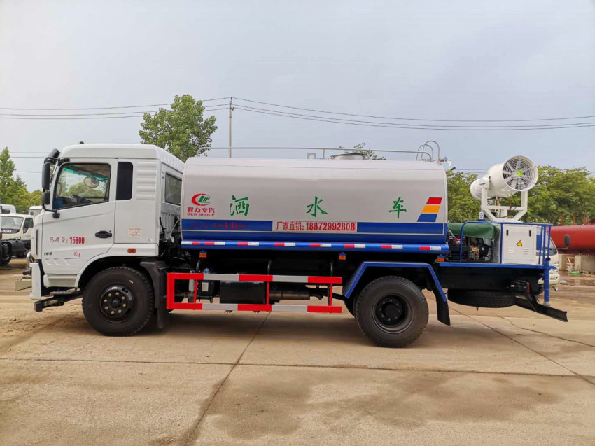 灑水車吸程≧7米,灑水寬度≧14-16米,射程≧25-40米,引水時(shí)間<5min,流量60m3/h。前沖(噴)、后灑、帶側(cè)噴(花灑)、帶后工作平臺(tái)、平臺(tái)上安裝綠化灑水高炮(炮噴射形狀可調(diào)節(jié):直沖、大雨、中雨、毛毛雨、霧狀、可連續(xù)調(diào)節(jié),360°旋轉(zhuǎn)),配消防接口,自流閥,濾網(wǎng),帶自吸自排功能。配備大功率專用灑水泵,泵可自吸自排,安裝過(guò)濾網(wǎng),帶消防接口,可通過(guò)消防栓進(jìn)水,帶自流閥,此車尾部加裝大功率農(nóng)藥噴灑炮,