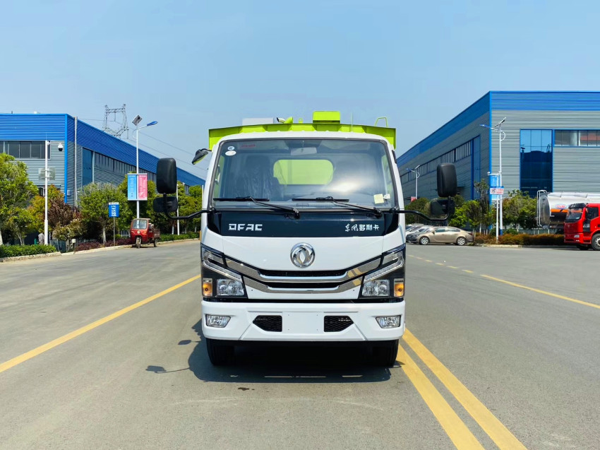 11、國六東風多利卡9方洗掃車的垃圾箱內(nèi)帶有自潔功能,在垃圾傾倒完成后可將箱內(nèi)的殘留垃圾沖洗干凈,減輕環(huán)衛(wèi)工人的負擔。