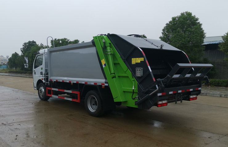 壓縮式垃圾車壓縮式垃圾車采用機電液一體化技術,主要通過垃圾廂、填裝器、推鏟、液壓系統等專用裝置,借助機、電、液聯合自動控制系統,通過車廂、填裝器和推鏟等專用裝置,實現垃圾倒入、壓碎或壓扁、強力裝填,把垃圾擠入車廂、壓實,還有卸料功能。其主要特點是垃圾收集方式簡便、 、具有自動反復壓縮以及蠕動壓縮功能,壓縮比高,裝載質量大,作業自動化,動力性、環保性好,整車利用效率高,密封性好的特點。