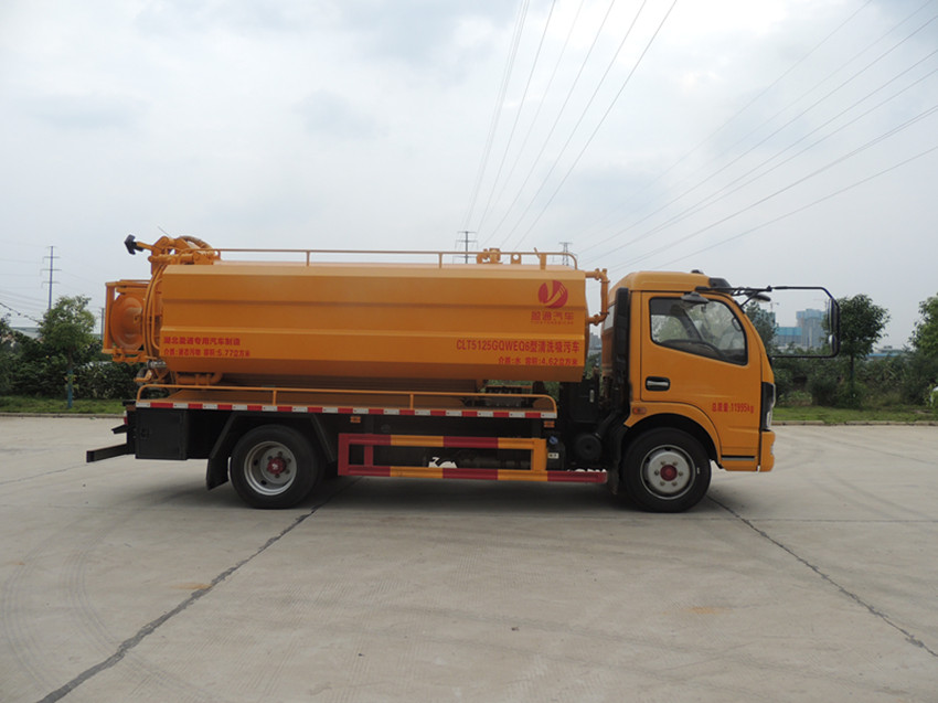 東風(fēng)清洗吸污車清洗部分:清洗罐采用5mm武鋼碳鋼制作,容積約2.7方,帶視水管,安裝德國品孚高壓清洗泵,壓力22Mpa,流量215L/min,帶60米內(nèi)徑19mm清洗鋼絲軟管,標(biāo)配十個(gè)不同口徑合金噴頭,卷管力為1800N,卷管速度0-25m/min,推進(jìn)力度大于180N,可通直徑10-80公分水管及下水道管道。