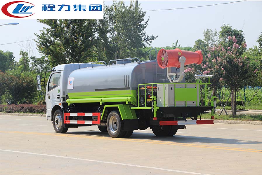 4、綠化炮功能:綠化高炮位于灑水車的后工作平臺,可全方位旋轉,并可調節多種噴灑、噴射方式(柱狀射程≥28m;霧狀射程≥15m)。綠化炮霧狀噴灑可用于園林綠化噴灑作業;綠化高炮噴射一般用于沖洗澆灌樹木;綠化炮沖洗一般用于護欄沖洗、高空建筑物沖洗等。