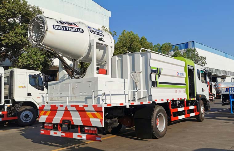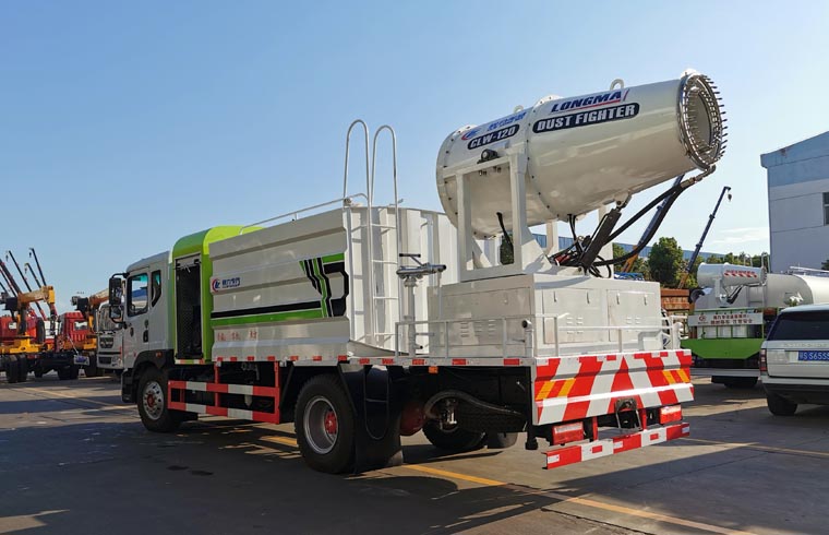 東風(fēng)霧炮車上裝配置:罐體容積10立方,罐體為方形罐,罐體內(nèi)部做防腐,罐體鋼板采用Q235碳鋼鋼材,整車具備灑水車的一切功能(前沖、后灑、側(cè)噴、平臺高炮),氣動球閥控制灑水功能,水位報警器,標(biāo)配億豐60/90水泵,自流閥及消防接頭各1個、水管2根。后平臺安裝一臺80米霧炮。