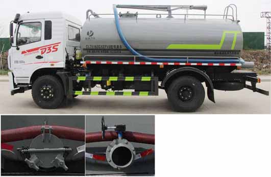 主要專用裝置:罐體及吸糞裝置,主要用于抽排運污水、糞便、泥漿等液態污物.運輸介質:液態污物,密度:800千克/立方米.罐體總容量:11.03立方米,罐體有效容積:10.5立方米;罐體外形尺寸(長×長軸×短軸)(mm):4400×2300×1550.裝備ABS,型號/生產廠家:3631010-C2000/東科克諾爾商用車制動系統(十堰)有限公司,ABS-E 4S/4M/生產廠為威伯科汽車控制系統(中國)有限公司.側、后防護材料均為:Q235碳鋼,連接方式均為:螺栓連接,后部防護截面尺寸(mm):120×50,后部防護離地高度(mm):470.僅采用底盤3950mm,4500mm軸距改裝.選裝側面樣式,選裝后部出口樣式.