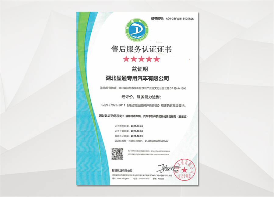湖北盈通專用汽車有限公司承諾:凡屬本公司生產(chǎn)銷售的產(chǎn)品,底盤部分,全國服務(wù)站均可聯(lián)保,專用部分三包服務(wù)一年,售后服務(wù)四十八小時到位處理,終身負(fù)責(zé)維修并提供終身免費技術(shù)服務(wù)。