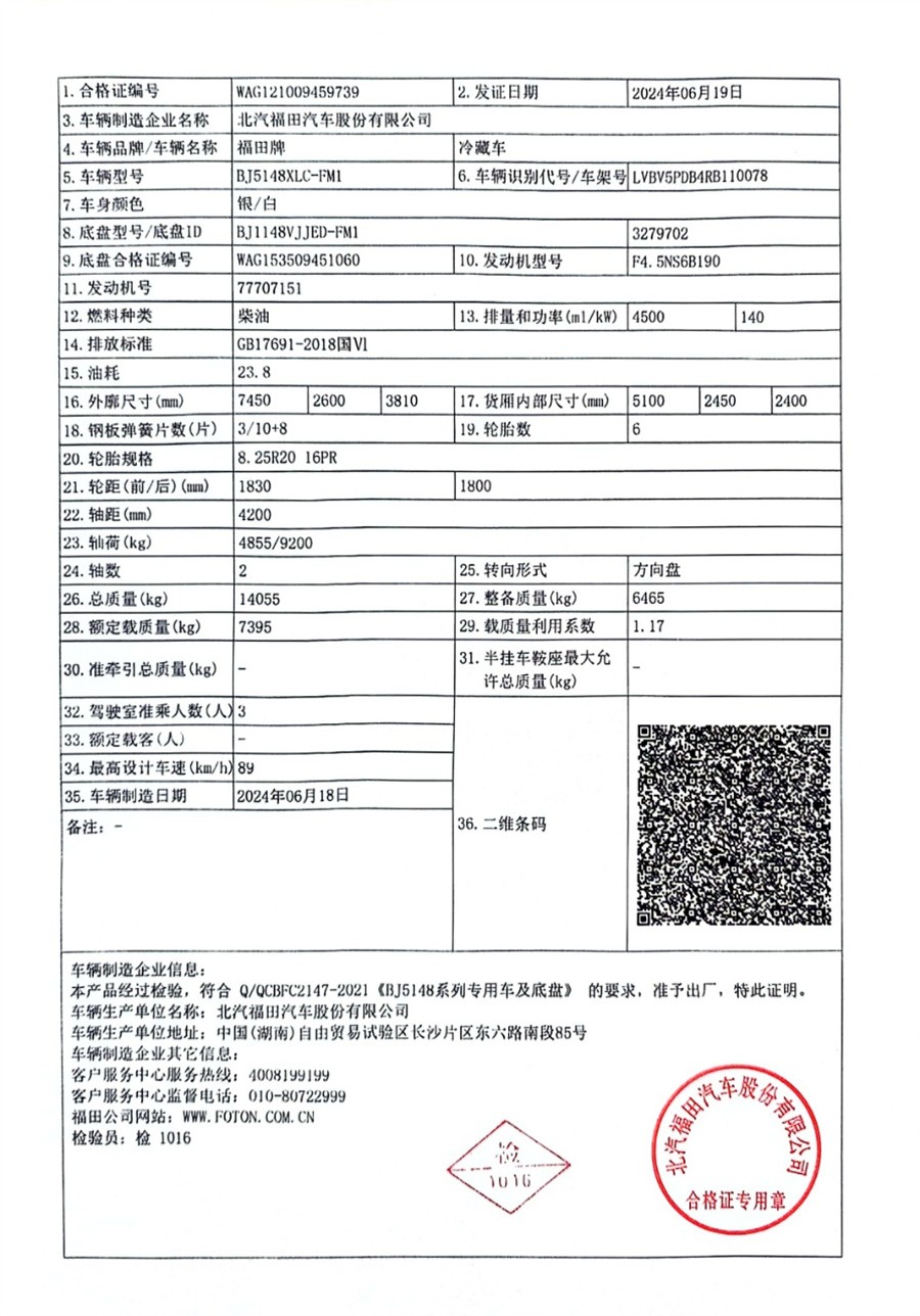 整車型號:BJ5148XLC-FM1;