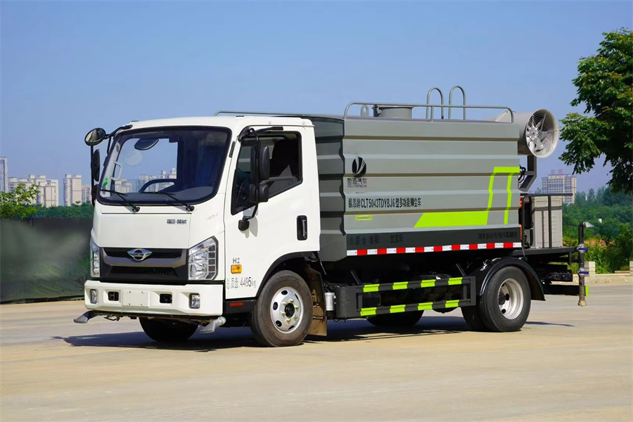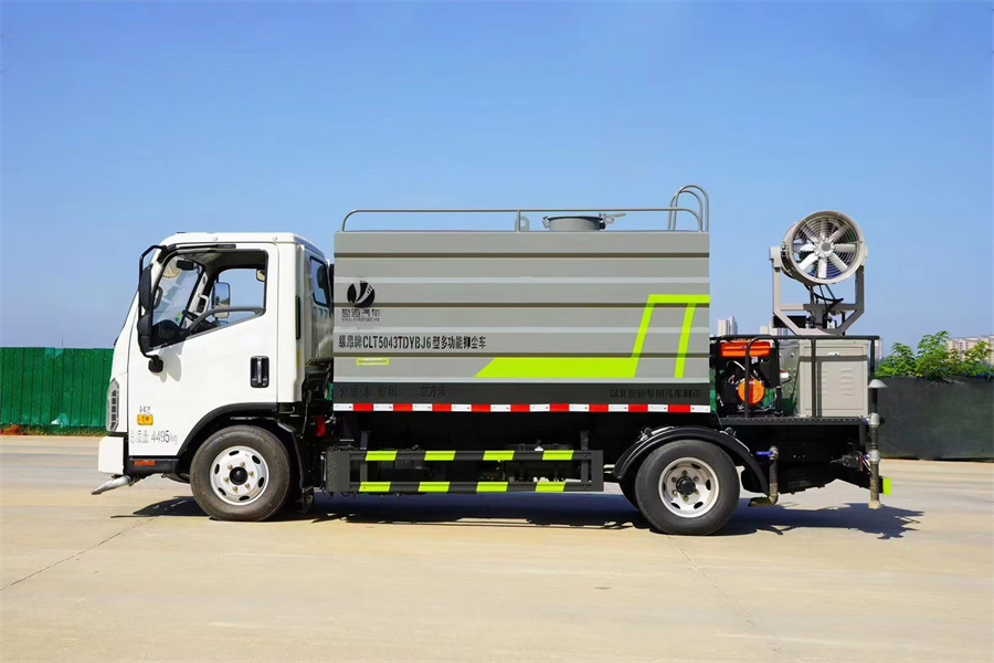 福田7方藍(lán)牌霧炮灑水車產(chǎn)品簡(jiǎn)述:縱昂牌 CLT5043TDYBJ6 型多功能抑塵車標(biāo)配前噴(鴨嘴)、后對(duì) 沖、后灑、側(cè)噴、后置式工作平臺(tái),平臺(tái)上配置綠化水炮(可 360°旋轉(zhuǎn),既可 以調(diào)成柱狀,也可以調(diào)成霧狀),配備優(yōu)質(zhì)大功率專用灑水泵(可自吸自排, 可從河里或池塘抽水到罐體),取力器,雜物過濾網(wǎng),消防接口,自流球閥系統(tǒng)、 取力器、球閥、濾網(wǎng)均為國(guó)家標(biāo)準(zhǔn)產(chǎn)品,主管道加粗,法蘭墊、法蘭盤加厚, 大通徑球閥。整體具備性能優(yōu)良安全可靠、效率高、流量大、維修方便等特點(diǎn)。