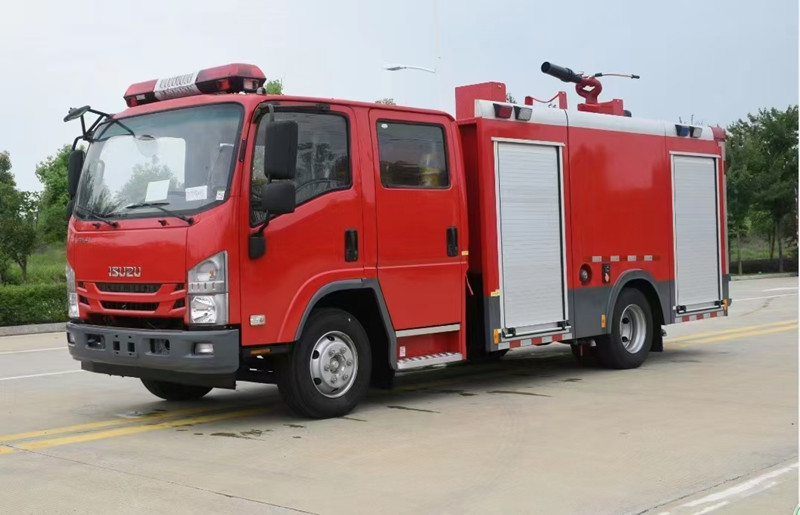 重慶五十鈴2-3噸消防車慶鈴QL1070A6HWY底盤改裝,平頭雙排駕駛室,液壓翻轉,五十鈴4KH1CN5LS發動機,98馬力,國五排放,罐體容積2-3立方米;整車結構緊湊,方便靈活,動力性能好,車速高,能自由進出鄉村狹窄道路及小區,具有大型消防車的全套消防功能,上裝箱體的上裝骨架全部采用引進歐洲技術生產的鋁合金型材制造,整車的重量減少,機動性能和整車載重量提高。除了裝備消防水泵及器材以外,還設有較大容量的貯水罐及水槍、水炮等。可將水和消防人員輸送至火場獨立進行撲救火災。也可以從水源吸水直接進行撲救,或向其他消防車和滅火噴射裝置供水。在缺水地區也可作供水、輸水用車,主要適用于大中城鎮、鄉村狹窄街道、城市小區、繁忙的批發市場等場所的一般物質滅火,閑暇時可用于園林噴灌、道路清灑。