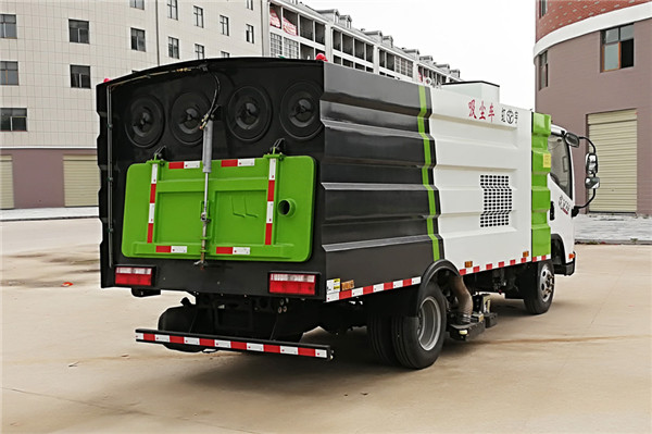 上裝配置:該車型在二類底盤上進行改裝,加裝副發(fā)動機、風機、清水箱、垃圾箱、掃刷、后置吸盤,掃盤降塵系統(tǒng),液壓系統(tǒng)、專用裝置電控系統(tǒng)和副車架等改裝而成。