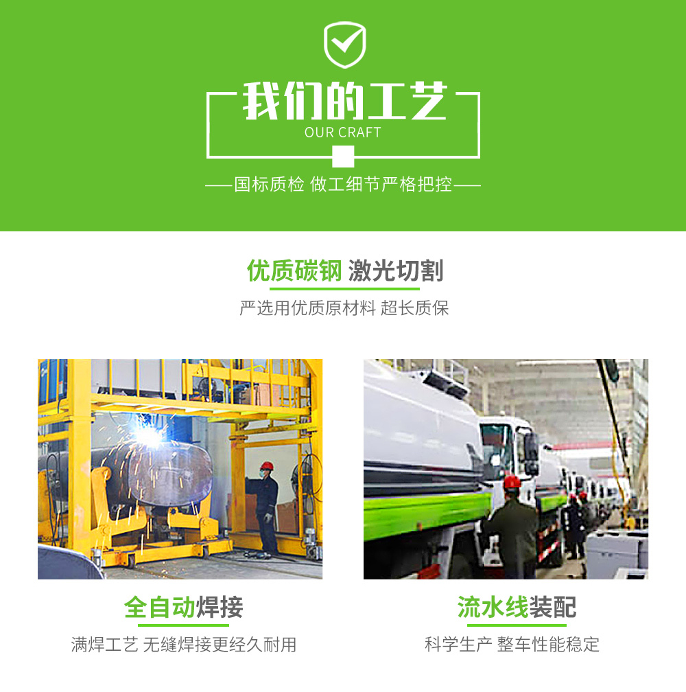 專用功能配置:罐體實際容積約為17立方米,(罐體有效參數14立方米、額定載質量10620kg、)采用武鋼優質碳鋼板卷壓成型。配備專用灑水泵,自吸自排,前噴后灑、側噴、后工作平臺及灑水高壓炮。灑水泵自吸高度為6米左右,整車灑水寬度14米左右,后工作平臺水炮可調成:直沖狀、大雨、中雨、小雨、毛毛雨,有效射程≥28米,整車帶接頭、水位計,自流閥。后工作平臺主管路帶1寸澆花接口,附送2根3米水管,1個爬梯,兩側及后保險杠。 |