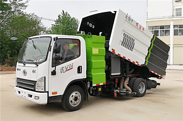 6.垃圾箱容積4m3,水箱1m3內(nèi)部加裝進口防水材料濾筒,垃圾分類存放,能有效地對樹葉,石子,灰塵進行粗細(xì)處理,廂體采用傾翻卸料。