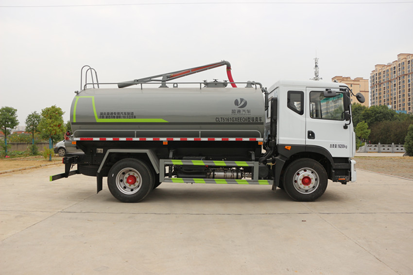 配置山東SK-12S水循環吸污泵,不銹鋼水箱,取力器、傳動軸、水氣分離器、多路換向閥、360°旋轉底座、真空壓力表、視糞管、后部自流口200mm。洗手箱,1根8米吸糞管