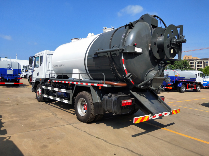吸污車采用國內技術領先的吸污專用泵,吸力大,吸程遠,特別適合用于下水道內的淤積物的抽吸、裝運和排卸,尤其是可吸下水道泥漿、淤泥、石子、磚塊等較大物體、含水量較小等物質。抽滿污(糞)罐體時間:≤5min,吸程:≥10m。自吸自排,壽命長,工作速度快,運輸方便。吸污車的排放有加壓排放和自流排放兩種方式,吸污車自吸自排,后蓋可打開并自卸罐體中雜質,抽吸效率高、自吸、自排及直灌等特點,操作快速、簡便 。適宜于大、中、小城鎮環衛、市政部門使用。 配德國進口18兆帕的高壓清洗水泵 ,可以對下水道搜通