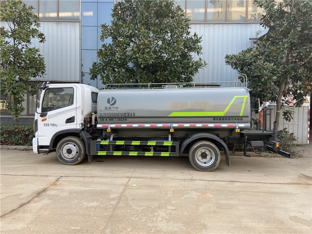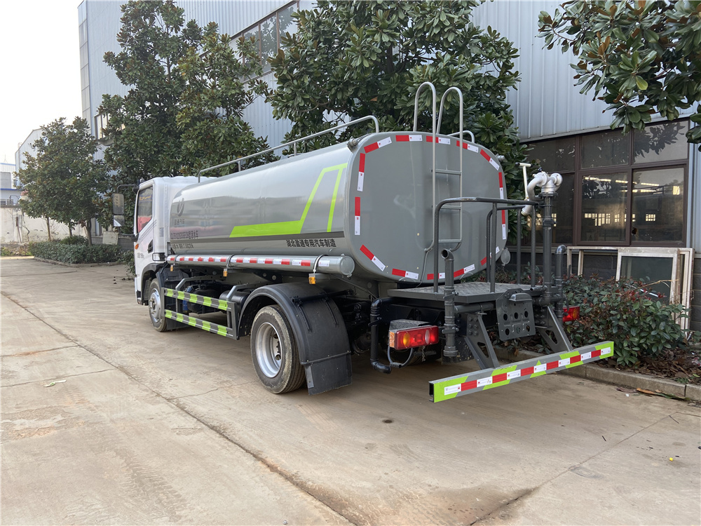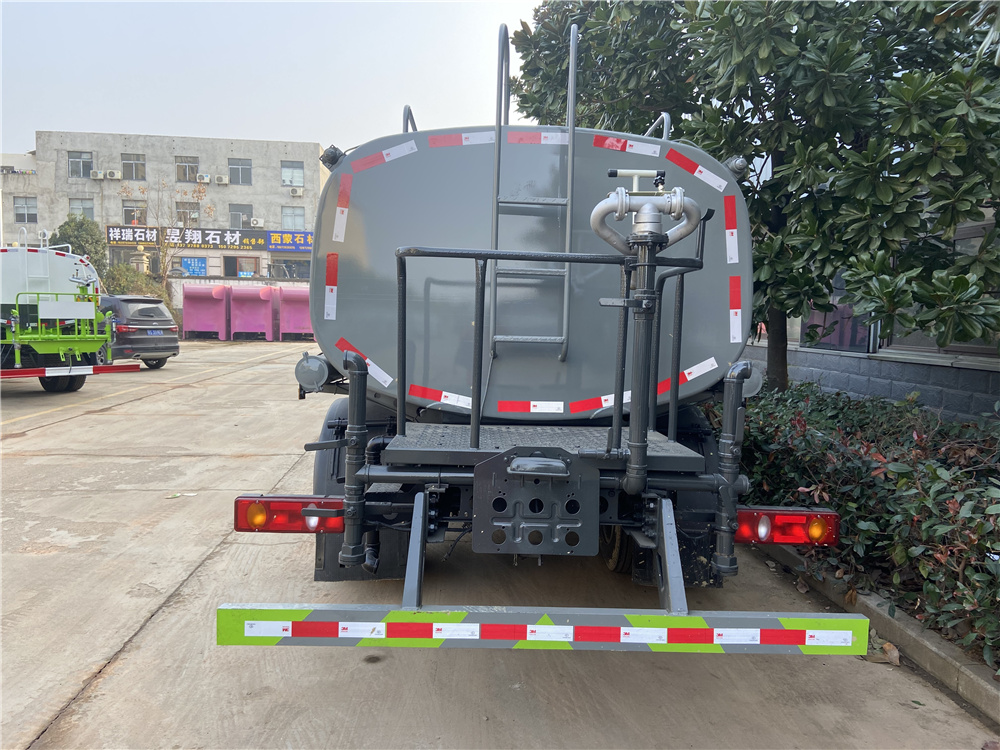 罐體實際容積約為9.35立方米,采用武鋼優質碳鋼板卷壓成型。配備專用灑水泵,自吸自排,前噴后灑、側噴、后工作平臺及灑水高壓炮。灑水泵自吸高度為6米左右,整車灑水寬度14米左右,后工作平臺水炮可調成:直沖狀、大雨、中雨、小雨、霧狀,有效射程≥28米,整車帶接頭、水位計,自流閥。后工作平臺主管道有一個一寸的澆花接口,附送2根3米水管,1個爬梯,兩側及后保險杠。