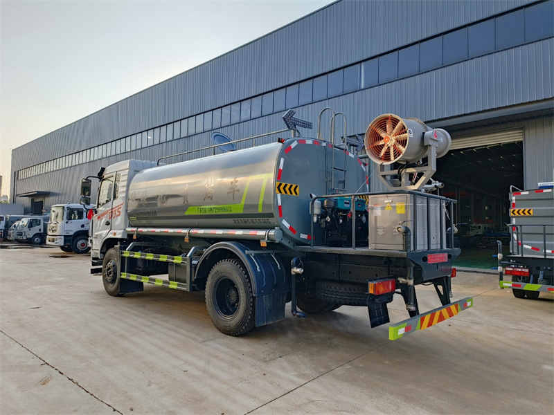 東風(fēng)12噸霧炮灑水車產(chǎn)品標(biāo)配前噴(鴨嘴)、后沖、后灑、側(cè)噴、后置式工作 平臺,平臺上配置綠化水炮(可 360°旋轉(zhuǎn),既可以調(diào)成柱狀,也可 以調(diào)成霧狀,更可以調(diào)成直沖狀、大雨、中雨、小雨、毛毛雨),配 備優(yōu)質(zhì)大功率專用灑水泵(可自吸自排,可從河里或池塘抽水到罐體), 取力器,雜物過濾網(wǎng),消防接口,自流球閥系統(tǒng)、取力器、球閥、濾網(wǎng) 均為國家標(biāo)準(zhǔn)產(chǎn)品,主管道加粗,法蘭墊、法蘭盤加厚,大通徑球閥。 整體具備性能優(yōu)良安全可靠、效率高、流量大、維修方便等特點