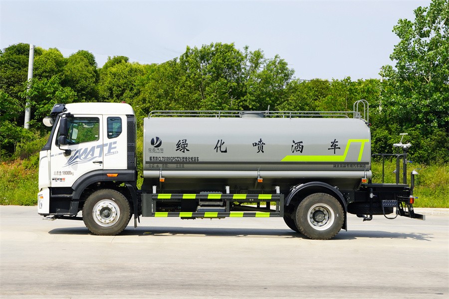 重汽15噸灑水車產(chǎn)品標配前噴(鴨嘴)、后沖、后灑、側(cè)噴、后置式工作 平臺,平臺上配置綠化水炮(可 360°旋轉(zhuǎn),既可以調(diào)成柱狀,也可 以調(diào)成霧狀,更可以調(diào)成直沖狀、大雨、中雨、小雨、毛毛雨),配 備優(yōu)質(zhì)大功率專用灑水泵(可自吸自排,可從河里或池塘抽水到罐體), 取力器,雜物過濾網(wǎng),消防接口,自流球閥系統(tǒng)、取力器、球閥、濾網(wǎng) 均為國家標準產(chǎn)品,主管道加粗,法蘭墊、法蘭盤加厚,大通徑球閥。 整體具備性能優(yōu)良安全可靠、效率高、流量大、維修方便等特點
