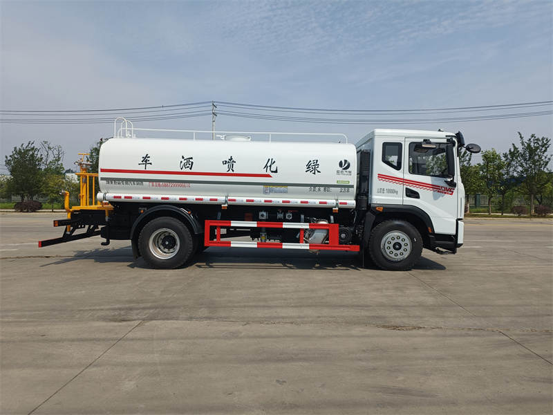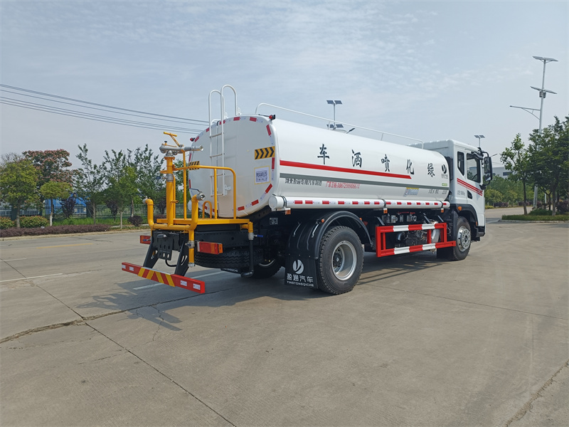 東風(fēng)15方灑水車產(chǎn)品標(biāo)配前噴(鴨嘴)、后沖、后灑、側(cè)噴、后置式工作 平臺(tái),平臺(tái)上配置綠化水炮(可360°旋轉(zhuǎn),既可以調(diào)成柱狀,也可 以調(diào)成霧狀,更可以調(diào)成直沖狀、大雨、中雨、小雨、毛毛雨),配 備優(yōu)質(zhì)大功率專用灑水泵(可自吸自排,可從河里或池塘抽水到罐體), 取カ器,雜物過(guò)濾網(wǎng),消防接口,自流球閥系統(tǒng)、取カ器、球閥、濾網(wǎng) 均為國(guó)家標(biāo)準(zhǔn)產(chǎn)品,主管道加粗,法蘭墊、法蘭盤加厚,大通徑球閥。 整體具備性能優(yōu)良安全可靠、效率高、流量大、維修方便等特點(diǎn)。